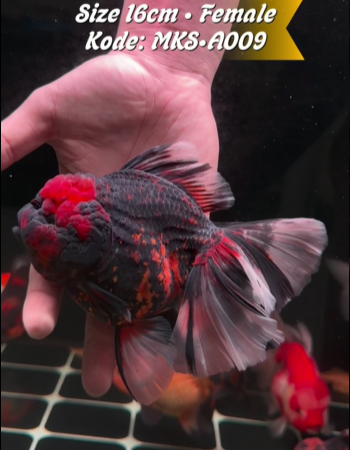Beranda » Koleksi Ikan Koki Oranda Grade A & High Quality » MKS•A009 – Oranda ShortBody Long/RoseTail Red-Black / Magma Tiger